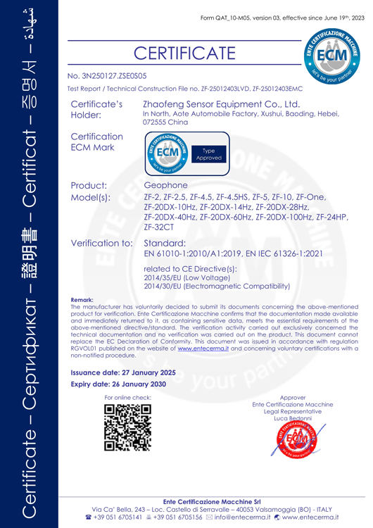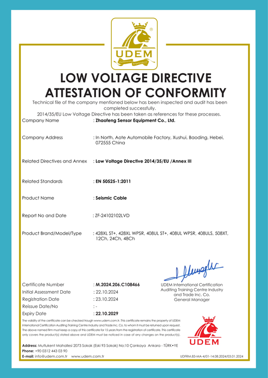 Zhaofeng Sensor Equipment Co Ltd was founded in 2001, and has been committed to manufacturing high-quality geophones, seismic cables, and accessories for branded seismic instruments, supporting oil & gas, mineral, and geotechnical exploration activities. Since 2017, Zhaofeng has expanded its business scope by establishing a node design center and a vibrator factory, offering a full range of seismic survey equipment. Our products have been tested and verified in 65 countries since 2001, including Kazakhstan, Germany, Algeria, Russia, Indonesia, Pakistan, India, Brazil, and Mexico, with even broader adoption across numerous cities.
