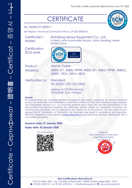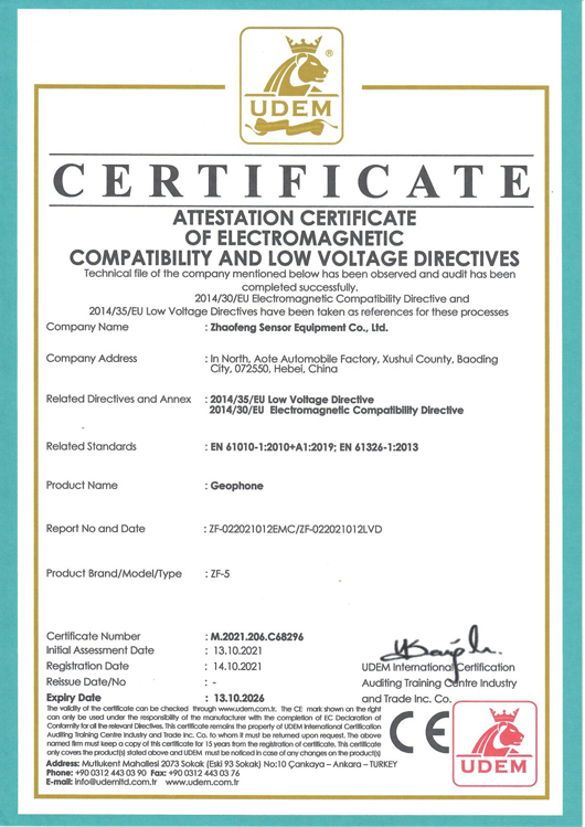Zhaofeng Sensor Equipment Co Ltd was founded in 2001, and has been committed to manufacturing high-quality geophones, seismic cables, and accessories for branded seismic instruments, supporting oil & gas, mineral, and geotechnical exploration activities. Since 2017, Zhaofeng has expanded its business scope by establishing a node design center and a vibrator factory, offering a full range of seismic survey equipment. Our products have been tested and verified in 65 countries since 2001, including Kazakhstan, Germany, Algeria, Russia, Indonesia, Pakistan, India, Brazil, and Mexico, with even broader adoption across numerous cities.